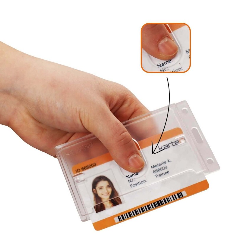 Card holders serve as ID sleeves and protective covers for name tags, entrance tickets or work IDs. The case is made of polycarbonate and has high heat resistance and scratch resistance.