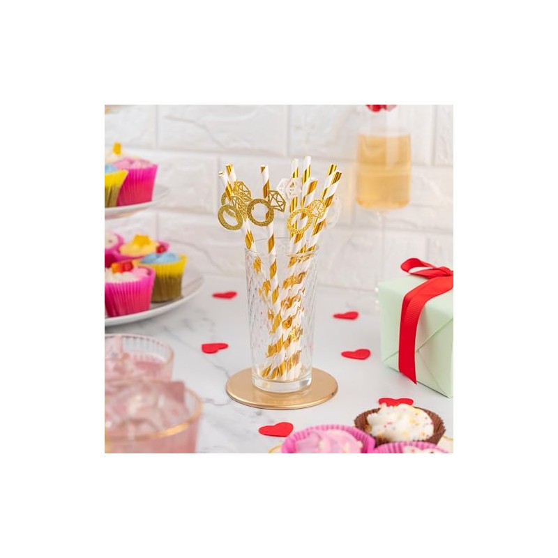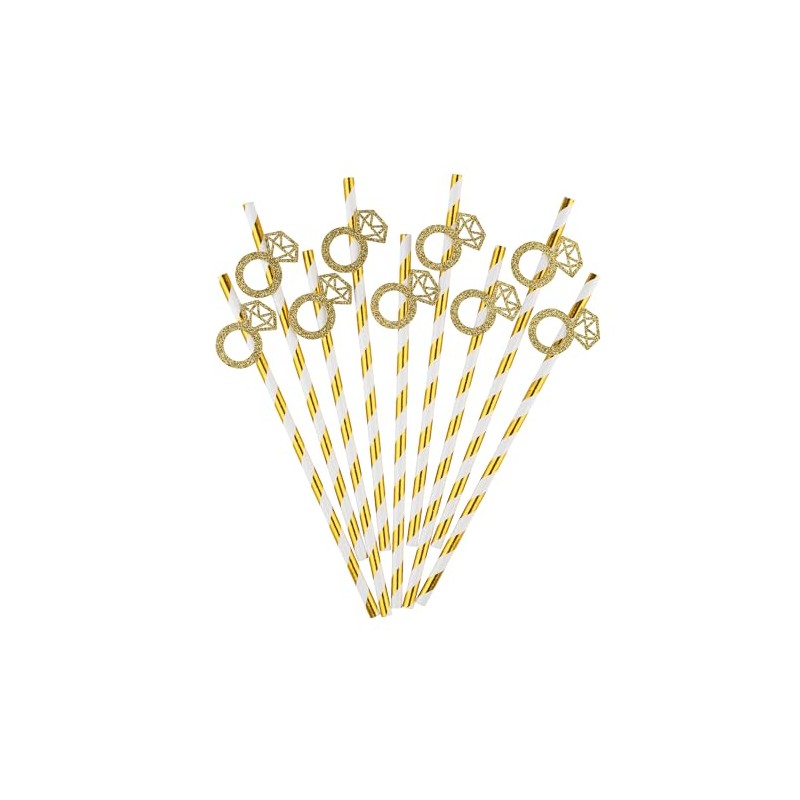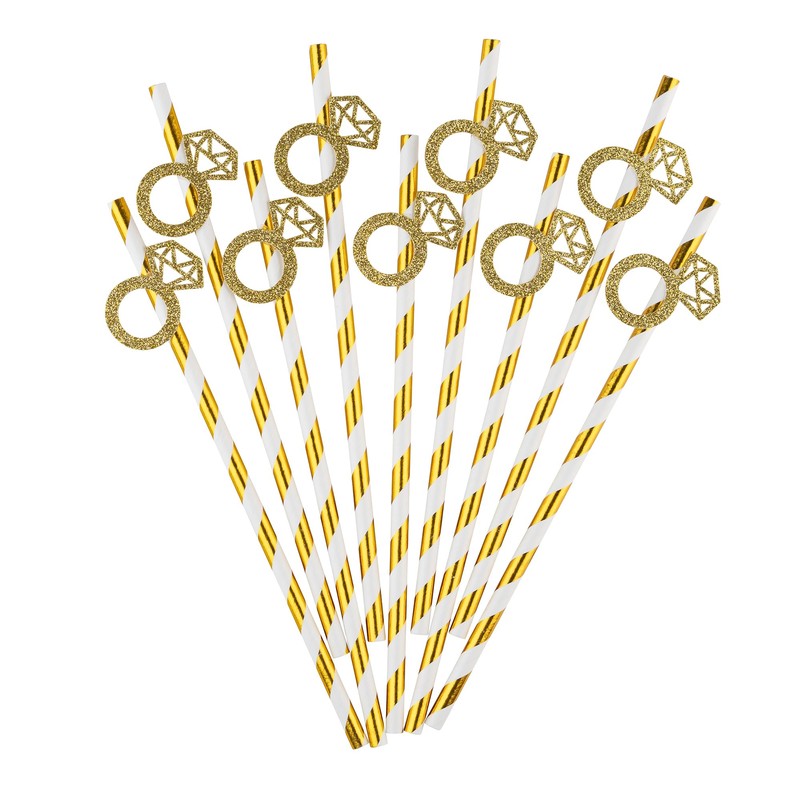10 x Gold Engagement Rings Paper Straws | Bachelorette Party Straws