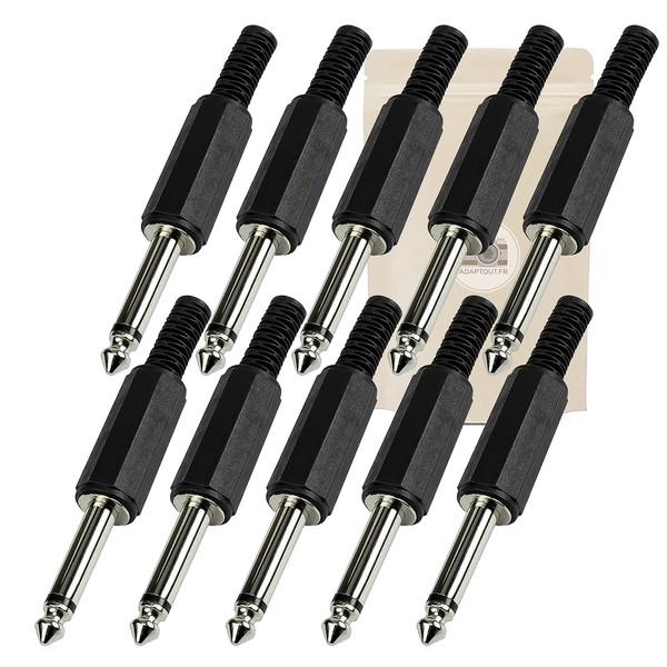 10 x Jack Socket TRS 6.35 mm Mono Plug for Soldering - for Speaker Microphone - Adaptout French Brand