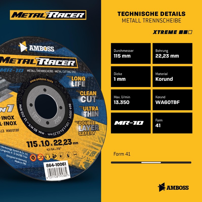 10 x Metal Cutting Disc Diameter 115 x 1 x 22.23 mm – The Metal Racer Cutting Disc by AMBOSS Tools is Suitable for Steel and Stainless Steel, Steel/Inox Cutting Disc 115 Suitable for Angle Grinders