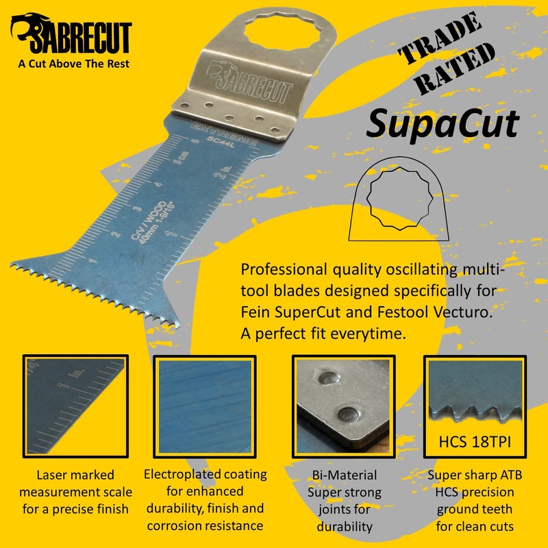 - SabreCut SuperCut interface fits Fein SuperCut ( FSC1.6 FSC2.0 FSN400E AFSC18 AFMT12 ) and Festool Vecturo OS400 Multitools (Not Compatible with StarLock Machines)