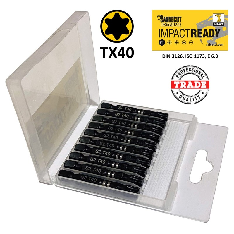 - Pack of 10 SabreCut 50 mm TX40 single-end impact driver bits