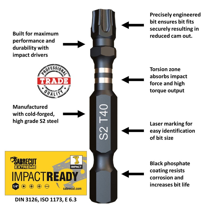 - SabreCut Extreme professional quality screwdriver bits specially designed for use with impact drivers. Reinforced tip for better impact resistance and longer life