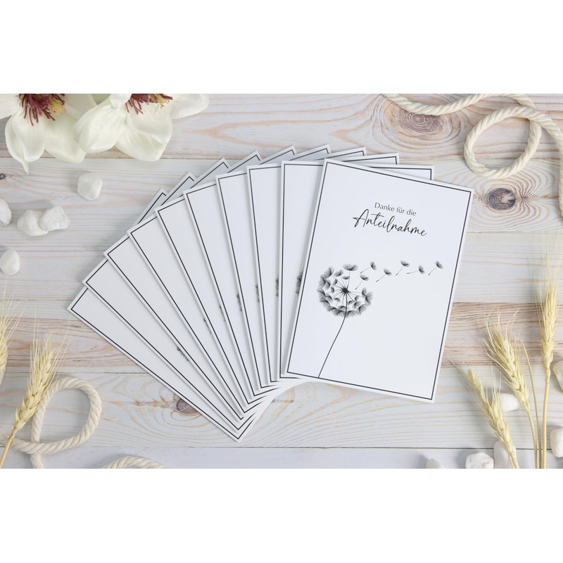 10 x Thank You Cards Mourning with Envelopes – Thank You Folding Card Dandelion – Thank You Card Funeral Service (DIN A6)