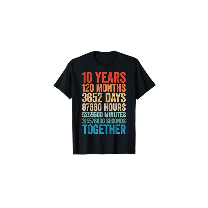 - Funny 10 years anniversary tshirts for couples. Makes a great 10 years anniversary gifts for him or 10 years anniversary gifts for her. Gift idea 10 years as a couple. Vintage and distressed retro style graphic.