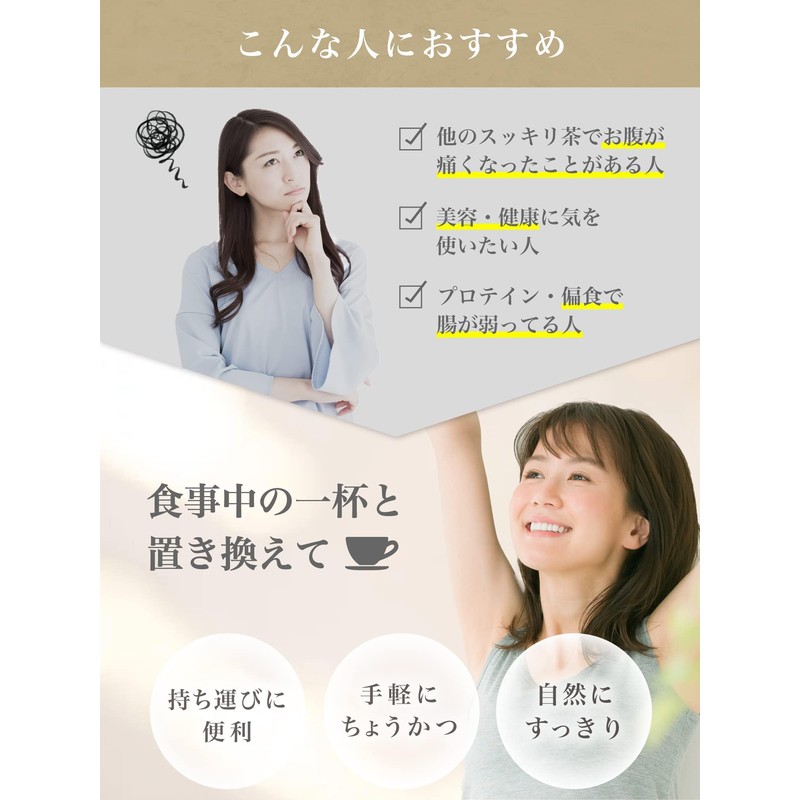 - 【●特徴2:極上ブレンド茶だからできた『おいしさ』と『配合量』の両立】 … 一粒100〜500mg程度のサプリと違い、お茶は1500mg以上ティーパックに詰めることができるため、スッキリ成分をたっぷり配合可能!大きい粒のサプリ・たくさんのサプリを飲むのは大変ですが、美味しいお茶はラクにたくさん摂取できます。