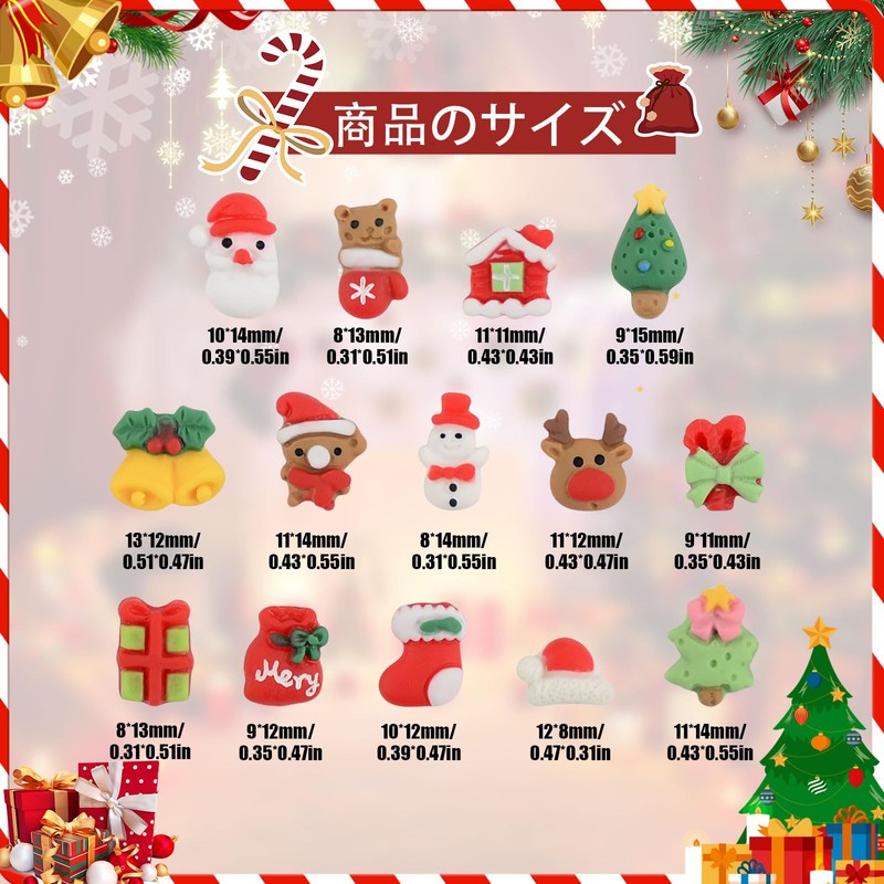 • 【素材】クリスマスネイルパーツは高品質の樹脂素材で作られており、安全で環境に優しく、強くて耐久性があります。 軽量で付け心地も良く、長時間ネイルをストレスなく飾ることができます。