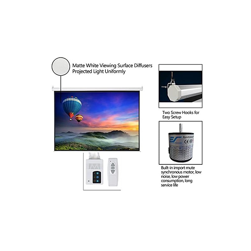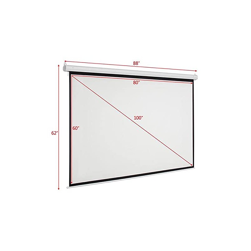 100" 4:3 80" x 60" Viewing Area Motorized Projector Screen with Remote Control, can offer you a perfect visual enjoyment with optimal image and color reproduction. It is ideal for home theater movies, classroom training, conference room presentations, public display, etc. High quality matte white surface provides 80" x 60" of viewing area with 4:3 aspect ratio. It features high quality matte white viewing surface, which diffuses projected light evenly. Take this one back for enjoying your leisure time!