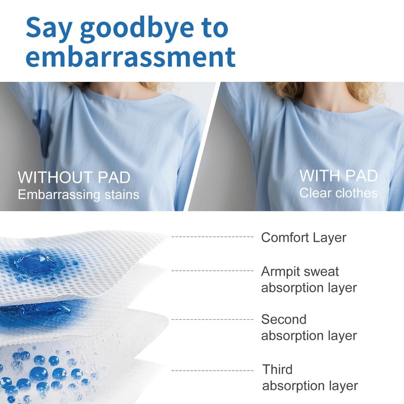 - Función práctica: hay 100 protectores de sudor debajo de la axila en el embalaje, que le permiten mantenerse alejado de las axilas húmedas durante aproximadamente 6 - 8 horas. Pueden absorber eficazmente el sudor y el olor de las axilas, manteniendo las axilas y la ropa limpias, secas y cómodas.
