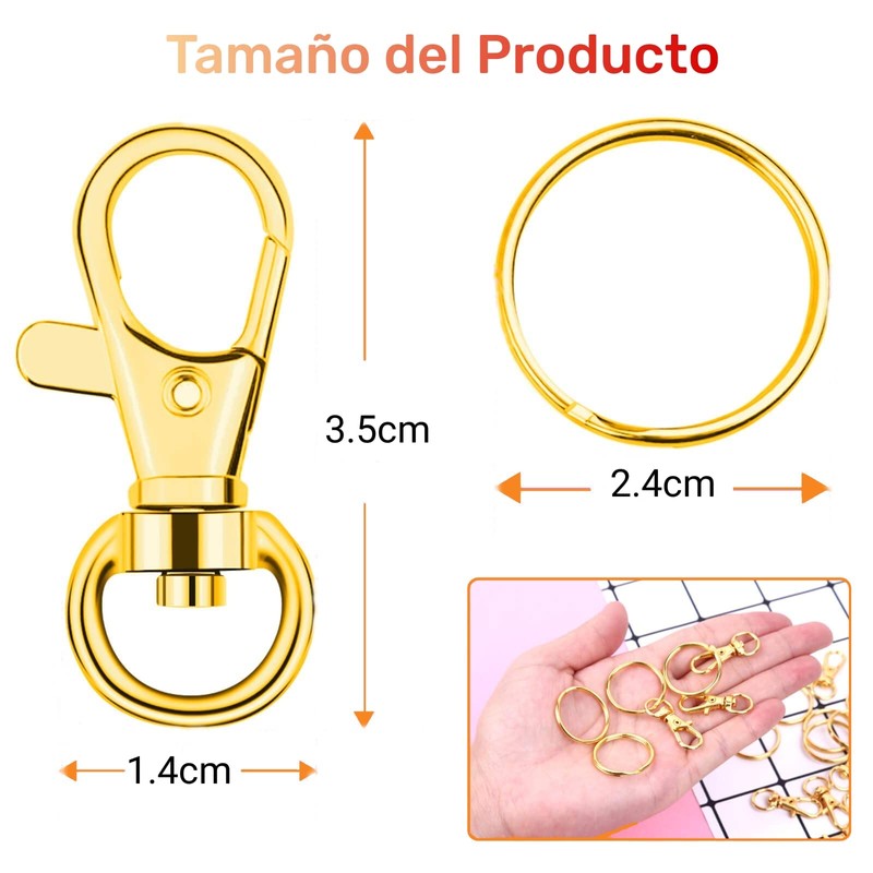 - 【Cantidad & Tamaño】50 ganchos giratorios + 50 argollas llaveros, que es lo suficientemente grande para que usted pueda hacer tipos de artesanías de bricolaje. La longitud total del cierre de gancho es de 5.2 cm, el diámetro del anillo es de 2.4 cm; el diámetro del llavero es de 3 cm. Tamaño adecuado fácil de combinar con sus proyectos de artesanía hechos a mano.