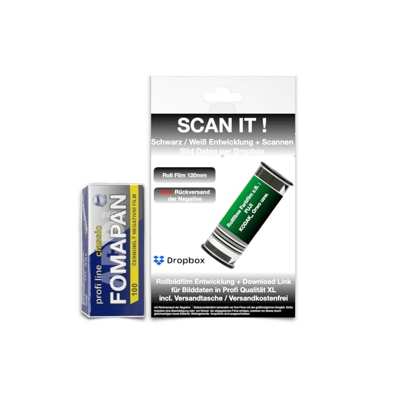 - 100 ASA 120 mm rollfim (black/white) with development shipping bag