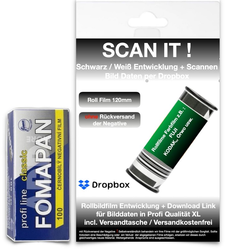 100 ASA B+W Roll Film 120 mm + Film Development + Scan without Negative Film