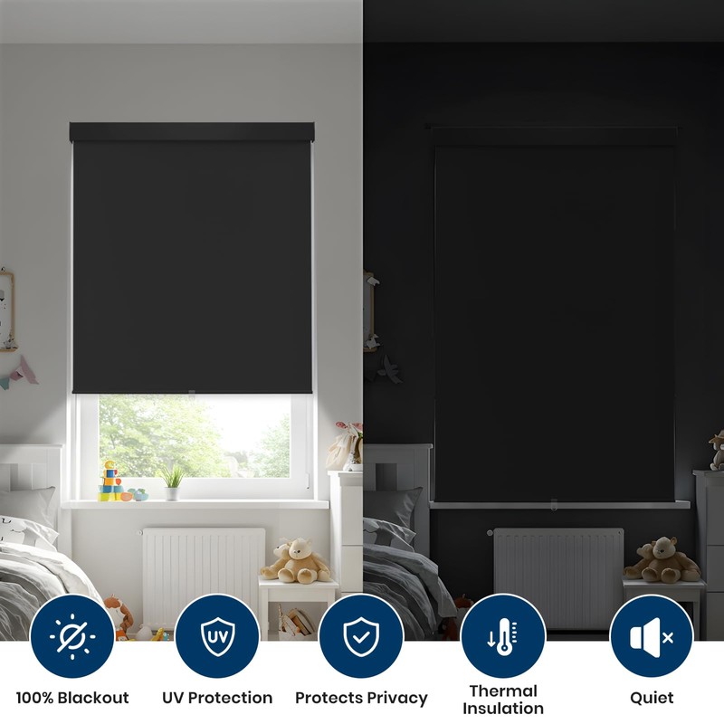• 【SUN BLOCKING】Our window blinds are made with 100% blackout fabrics, coated with full blackout insulation that is waterproof and noise-reducing, allowing you to sleep peacefully without the distraction of the early morning sun. The blackout blinds&shades block 100% of sunlight and UV rays. Reduce energy costs, increase privacy and create a quieter and more comfortable living and working environment.