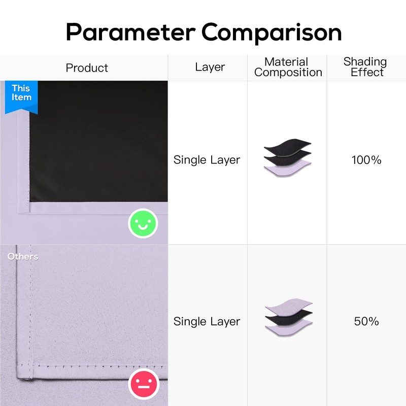 ★EFFICIENT BLACKOUT: These heavy blackout curtains definitely block 100% sunlight and ultraviolet rays, create an absolutely dark environment so you can sleep day or night as you wish, protect your furniture from color fading, and provide privacy in your place.