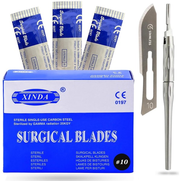 - ✔️ MuskalMed 100 Blades #10 Scalpel Blades For Knife Scalpel High Carbon Steel Dermablade Blades Individually Wrapped Sterile + 1 Adjustable Scalpel Handle #3 With 180° Rotation Blade Holder For Precise Cutting