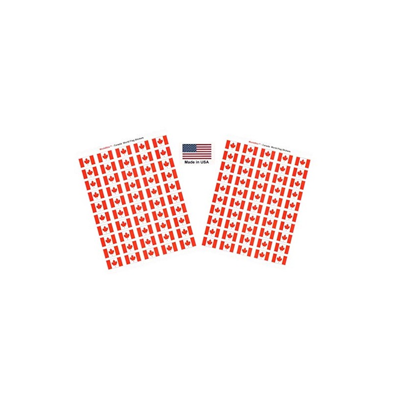 100 Canada Flag Stickers; American Made Decals Measure 1.5" x 1" & are Self Adhesive; Two Sheets of 50, 100 Sticker Flags Total