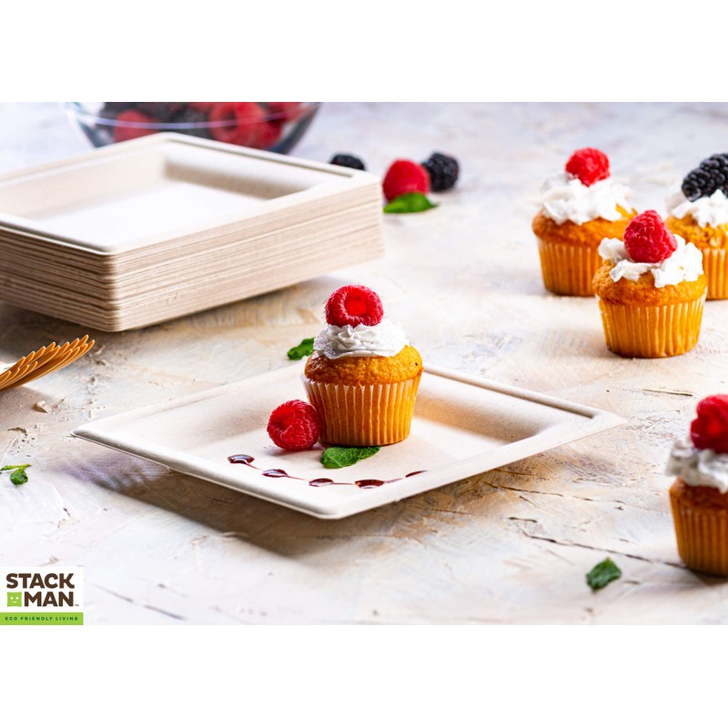 100% Compostable Square Paper Plates [6" x 6", Pack of 50] Elegant Premium Disposable Plates, Natural Unbleached Bagasse, Eco-Friendly, Made from Sugarcane Fibers, 6" Biodegradable Plate