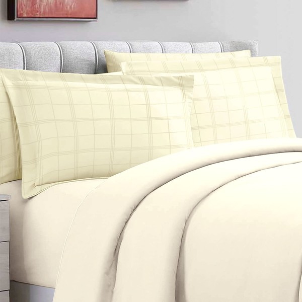 100% Cotton Cream Big Checks Oxford Pillow Cases 2 Pack, 300 Thread Count Long Staple Combed Cotton Checked Bedding, Sateen Standard Pillow Cover 50 x 75cm (Damask Bedding Set) - Pizuna