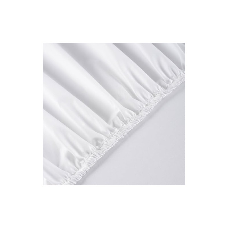 Transform your bedroom with this premium fitted sheet crafted from 100% cotton. The pre-shrunk and pre-washed fabric ensures consistent sizing while delivering exceptional softness and breathability for a comfortable night's sleep. Designed specifically for queen-size mattresses, the sheet features deep pockets and elasticized edges that provide a secure, wrinkle-resistant fit. The crisp white colour adds a touch of timeless elegance to any bedroom décor. The durable construction maintains its pristine appearance through regular washing, resisting pilling to keep your bed looking fresh and inviting. Machine washable for easy care, this fitted sheet combines practicality with lasting comfort. The high-quality cotton fabric allows for optimal airflow, helping to maintain a comfortable sleeping temperature throughout the night. Experience the perfect blend of style and functionality with this essential bedding staple that promises night after night of restful sleep.