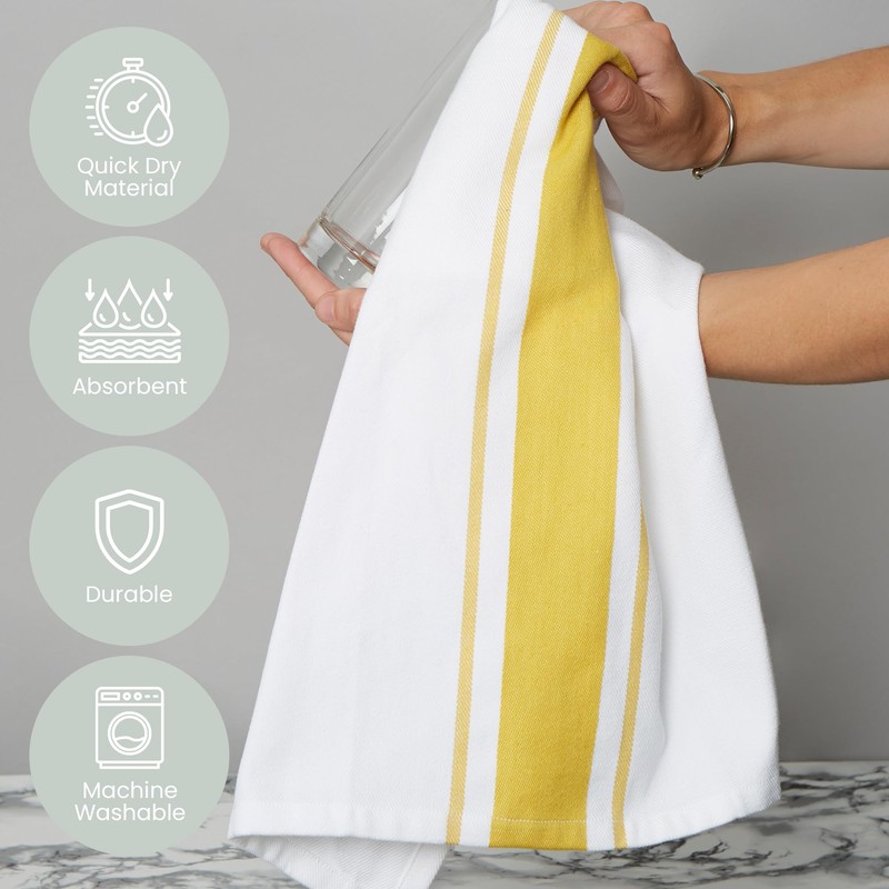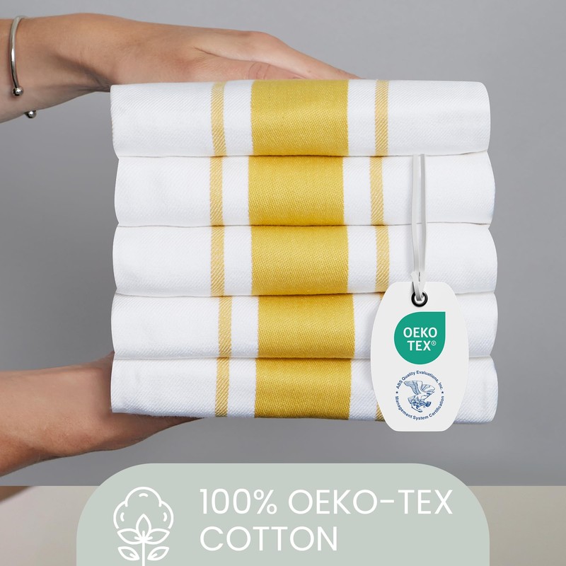 100% Cotton Tea Towel - Mustard Stripe Pattern, Pack of 5 | Kitchen Towel Set | Absorbent, Strong, Quick Dry & Machine Washable | Home Decor & Bathroom Accessories