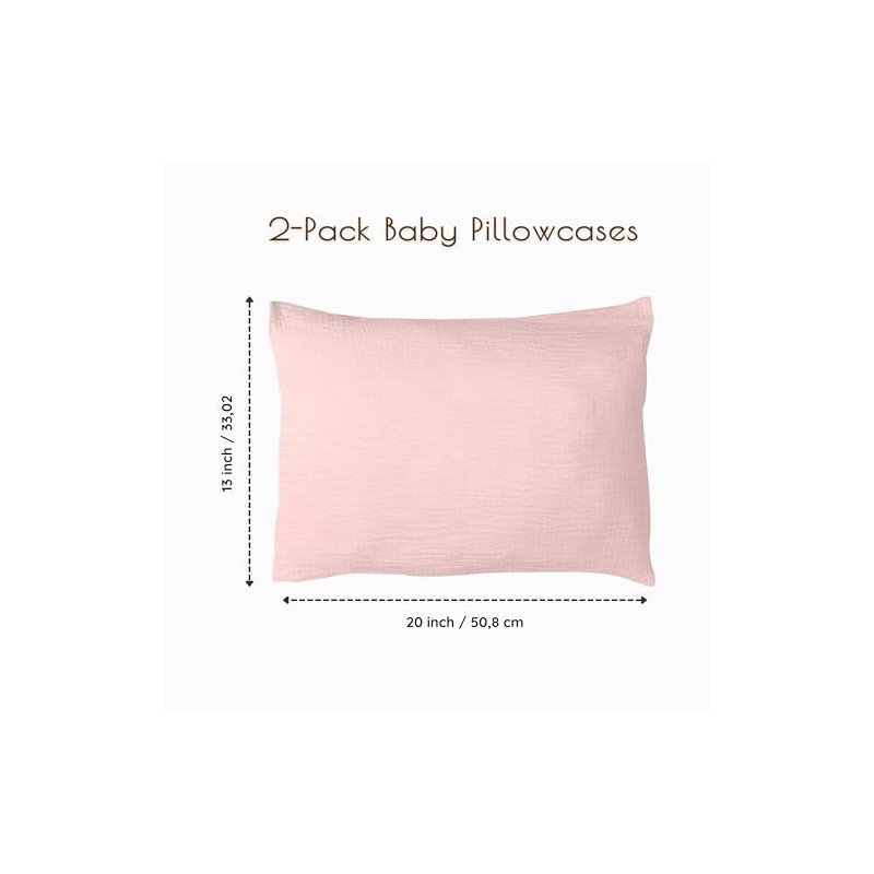 - Easy Care Muslin Pillow Cases: 2 pack baby pink pillow cases is machine washable at 30°C/86°F. Designed for everyday use as one of the best newborn essentials must haves, this 13x18 toddler pillowcase set maintain its softness and colors wash after wash thanks to its 100% cotton pillow case fabric.