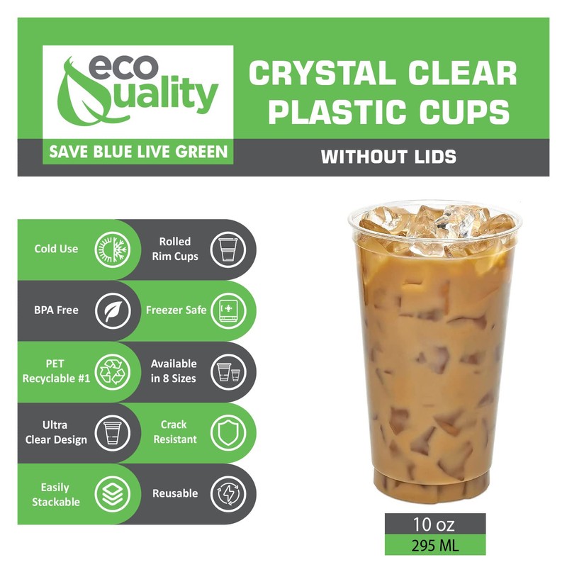 EcoQuality 10 Ounce Plastic PET Disposable Cups