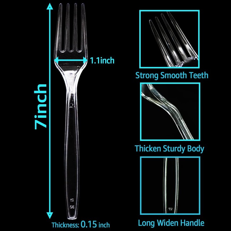 - 🌲Washable and Reusable: Clear forks disposable are sturdy enough that you could wash and reuse after use that they can last long time. Our disposable kitchen utensils have strong and safety teeth to firmly grasp the food, and no sharp or scratches to hurt your family.