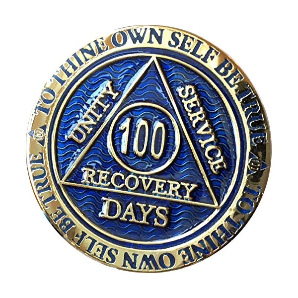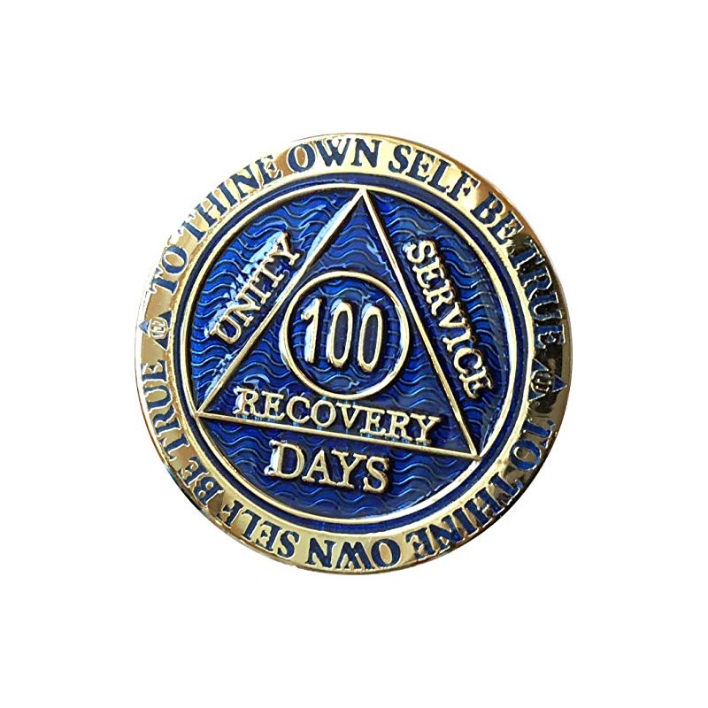 - 100 Days Alcoholics Anonymous Medallion In Reflex Blue Color and Gold Plated