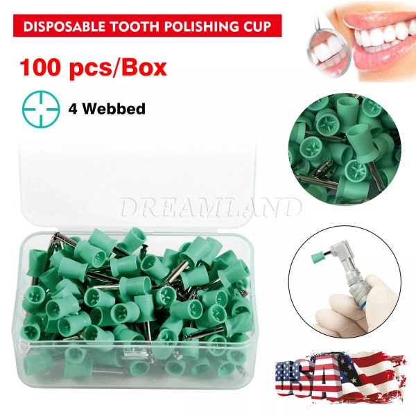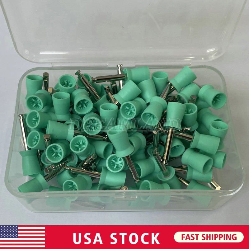 100 Dental Soft Prophy Cup Rubber Polish Brush Polishing Teeth Latch Type