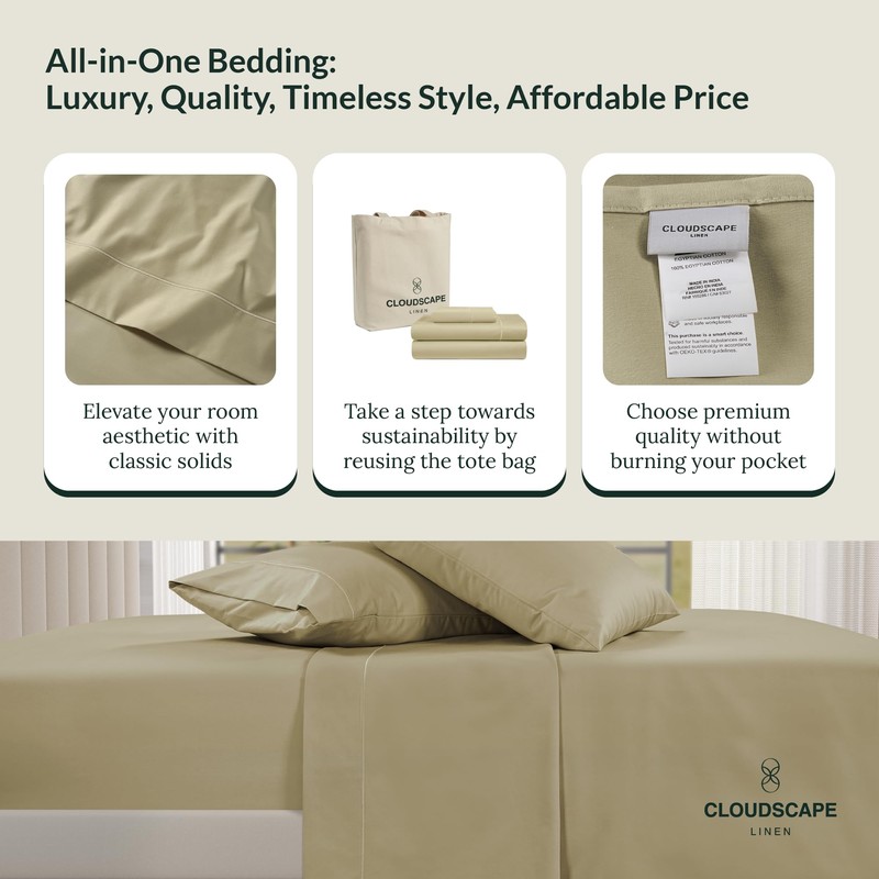- SUSTAINABLE, AFFORDABLE & CERTIFIED LUXURY: At Cloud Scape Linen, we are committed to Sustainable and ethically sourced practices with minimal use of chemicals in manufacturing. Our Split king size cotton bed sheet and pillowcase sets are proudly OEKO-TEX certified and come packaged in a reusable fabric bag, reducing unnecessary waste and promoting sustainable practices.