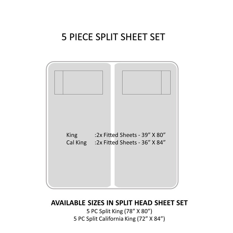- DEEP POCKET WITH ALL-AROUND ELASTIC FOR A SNUG FIT: 5PC SPLIT-CALIFORNIA-KING Giza Egyptian Dream Sheet Set includes 2 Fitted sheets: 36 inches x 84 inches, 1 Flat sheet: 102 inches x 108 inches and 2 Pillowcases: 20 inches x 40 inches. Fully elasticized fitted sheet provide 12-inch-deep pockets are generously sized to accommodate both deep and pillow-top mattresses. Flat sheet and pillowcases come with a tailored hem stitch giving them a classy look.