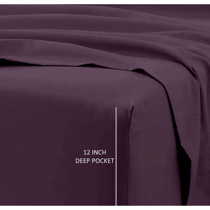100% Egyptian Giza Cotton Bed Sheet Sets, Giza Egyptian Sheets & Pillowcases - 5-PCs 12 Inch Deep-Pocket Egyptian Giza Bedsheet Sateen Weave for Soft Silky Feel - |Split-Cal-King 5PCs, Plum|
