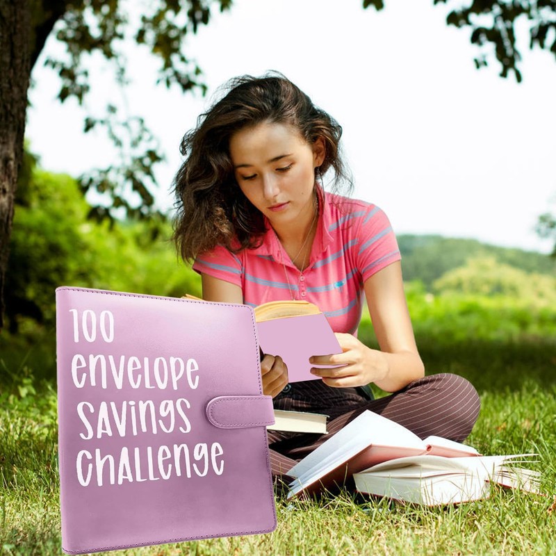 - 📒【100 Envelope Challenge Binder】Comes with an A5 size binder (9 inches tall X 7 inches wide), 1 laminated reusable tracker, pouches either labeled 1-100 for the traditional way to save 5,050.