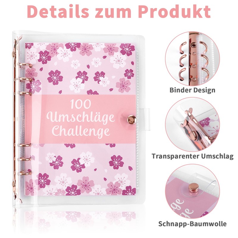 100 Envelope Saving Challenge Deutsc, A5 Budget Planner German, Challengers Savings Book for Money with Saving Challenges and 25 Inner Pages, Save 5,050 € in 100 Days for School, Home (Pink)