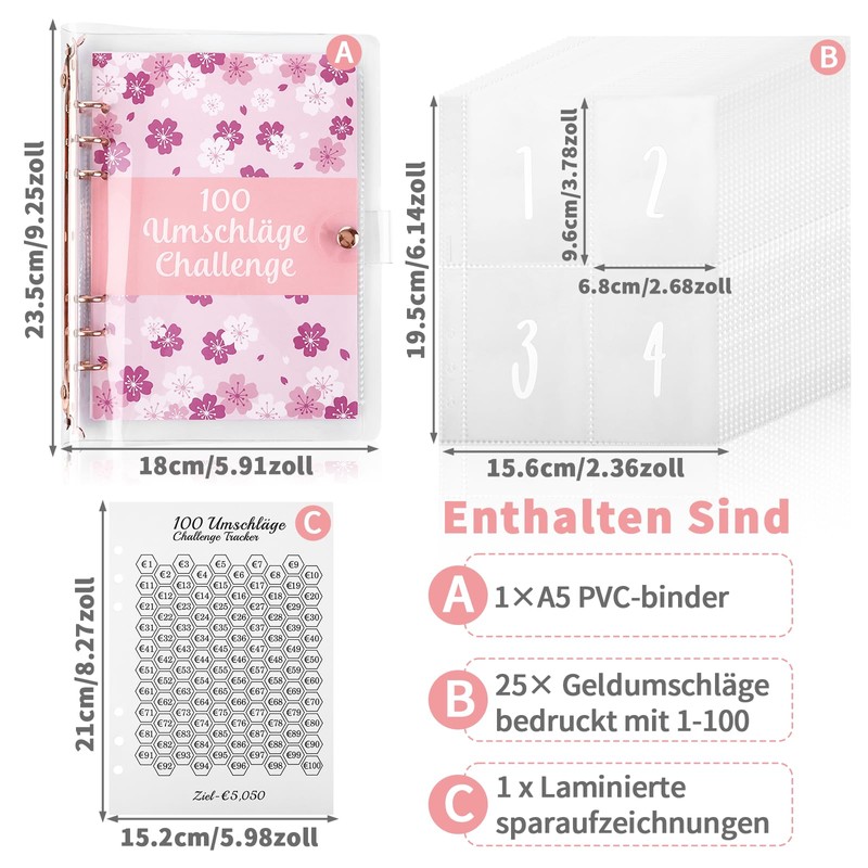 - What you get: 1 x A5 budget planner German with 25 inner pages, numbered from 1-100 (4 wallets per page), perfect for personal and family budgets to help you save money for a variety of different destinations such as cars, travel, emergencies and more