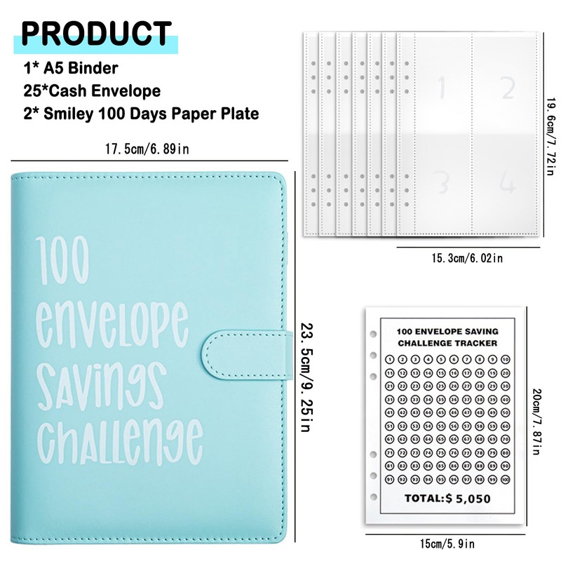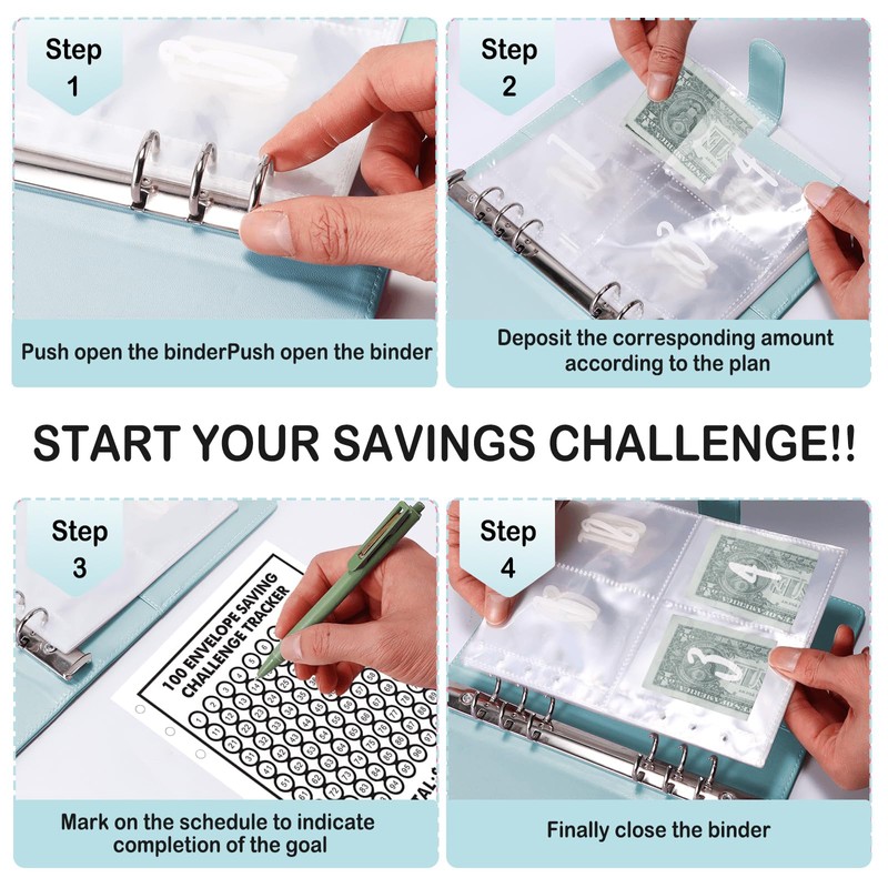 - 100 days challenge to save: the large format of the savings book is designed to be portable and contains 1 money sparklammer, printed index cards with 4 grids (25 sheets) and 100 days index cards so you can manage, record and check your finances at any time.