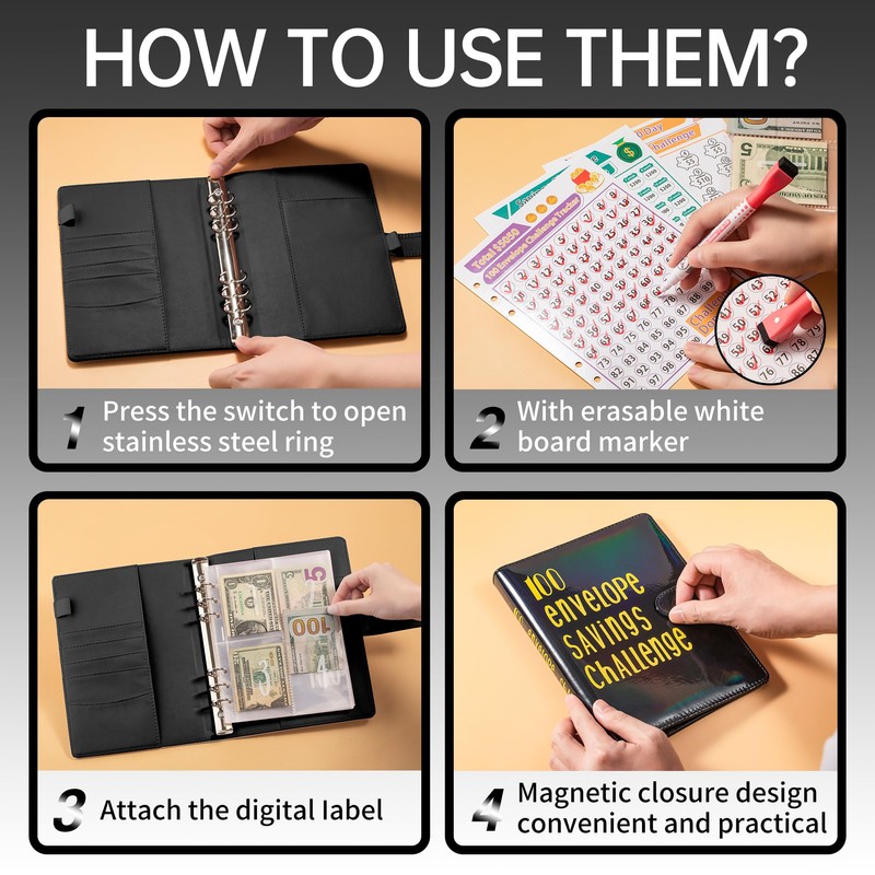 - 🍒There are 100 cash envelopes slots pre-numbered, simplely mark the saved amount and save money equal to the number to the envelope, once all 100 pockets have been filled, you will have succeeded your goal.