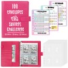 100 Envelopes Money Saving Challenge, Cash Budget Planner A5 Binder, Savings Challenges Book Organizer Folder, with 3 Tracker to Save $5,050 and $2,600, 300, 100 Pre-numbered Pockets, Hot Pink