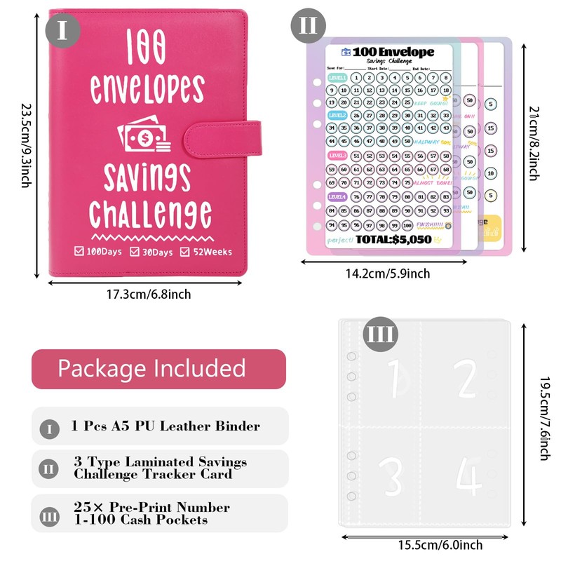 - How to Use: After selecting your desired goal, write down the challenge objective, starting date, and target completion date on the tracking cards. Proceed to then save the corresponding dollar amount in each envelope pocket. The longer you stick to the challenge, the more money you save. Once you have successfully achieved your goal, you can erase the marks from the tracker, preparing it for next use.