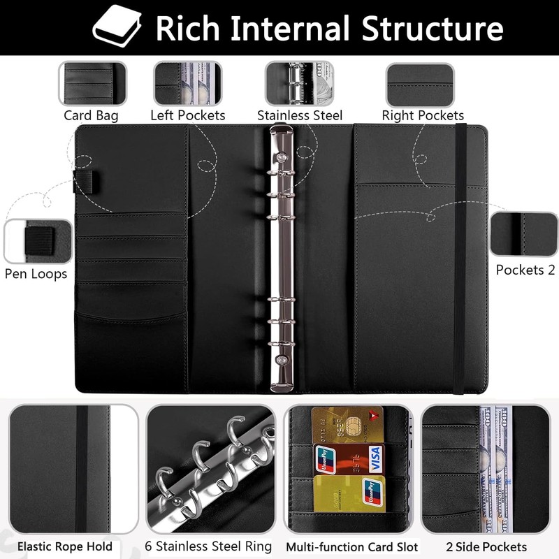 - đ°ăProduct Includesă 1pcs A5 PU leather savings binder with card slot, 25pcs 6-hole cash envelope(4 pockets per page), 2 coin zipper pockets, 1pcs colored label stickers, 20pcs Different Inspirational Quotes Stickers, 3 sheet savings challenge tracker, 3 Challenges like the 100-day $5,050 challenge, 30-day $500 challenge, and 52-week $10,000 challenge. 2 more challenges than the same product on the market, Choose the plan that suits your needs at different times.