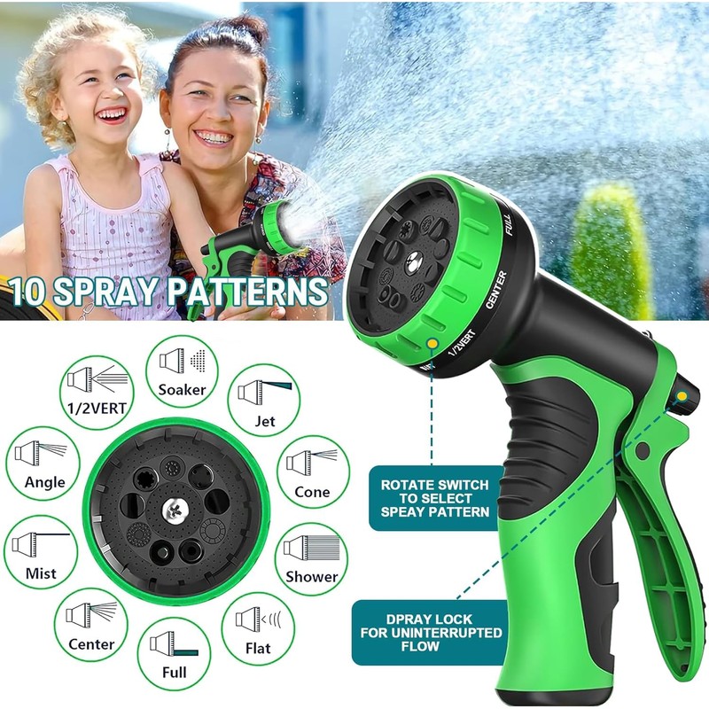 Whether you're watering delicate plants, giving your lawn a thorough soak, or cleaning outdoor spaces, this hose delivers exceptional performance. Its multi-functional nozzle offers an array of spray patterns, allowing for precise water distribution tailored to your needs.