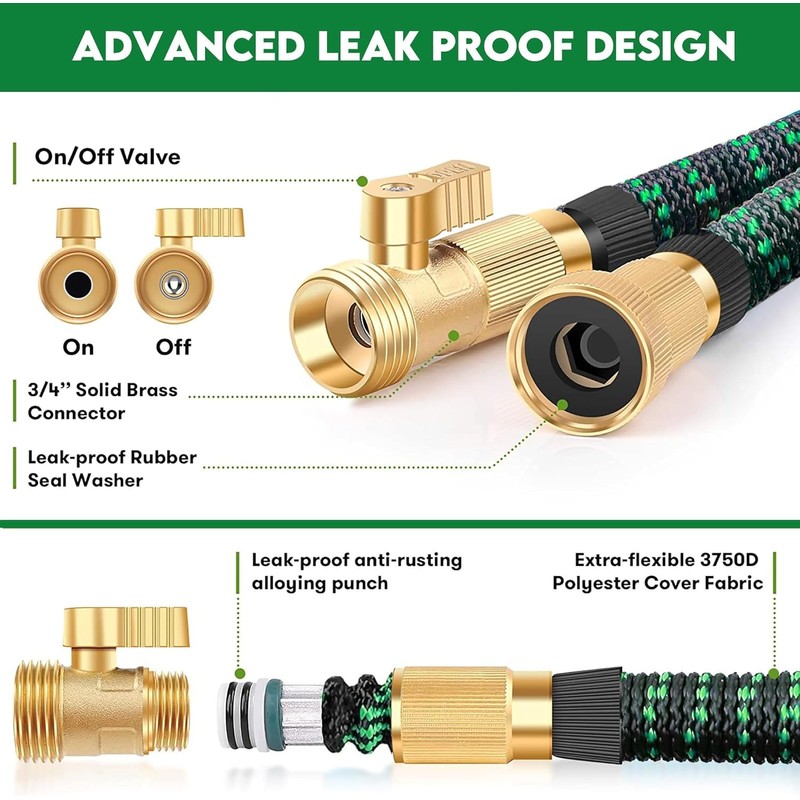 100 ft Expandable Garden Hose - Kink Free Flexible Water Hose 100ft with 10 Pattern Spray Nozzle, 3/4 Solid Brass Connectors, Retractable Lightweight Expanding Hose