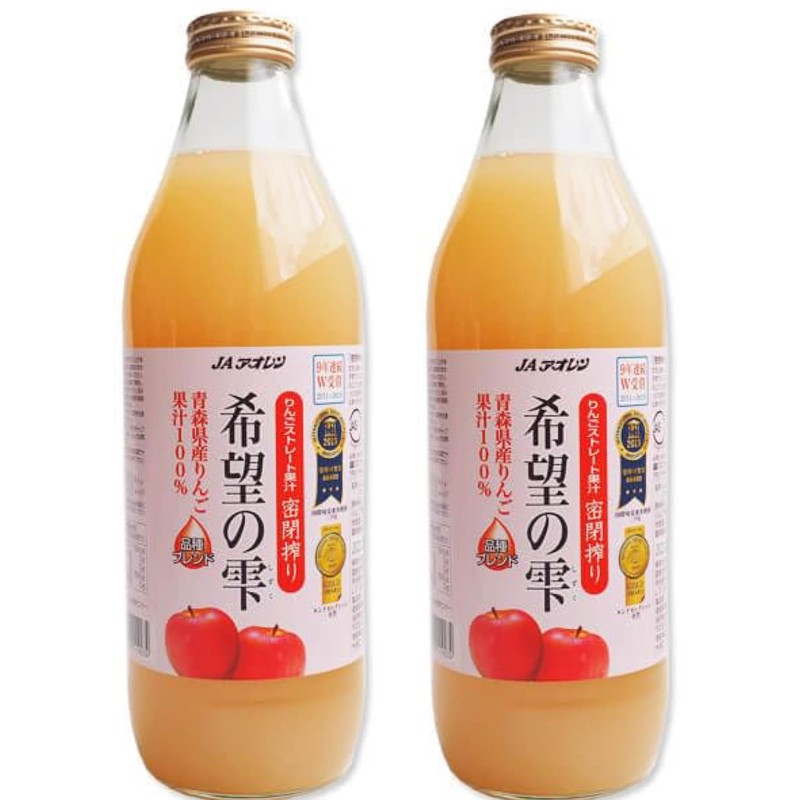 100% Japanese Apple Straight Juice 1000ml (Pack of 2 Glass Bottles), JA Aoren Aomori Shizuku of Hope, No Sugar Added, No Preservatives, Apple Juice from Aomori Prefecture, MADE IN JAPAN