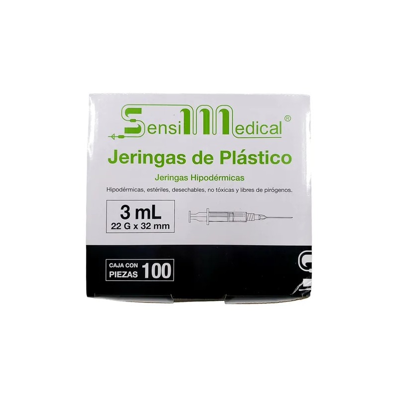 100 Jeringas HiPodérmicas Sensimedical 22gx32mm 3ml Capacidad En Volumen 3 Ml
