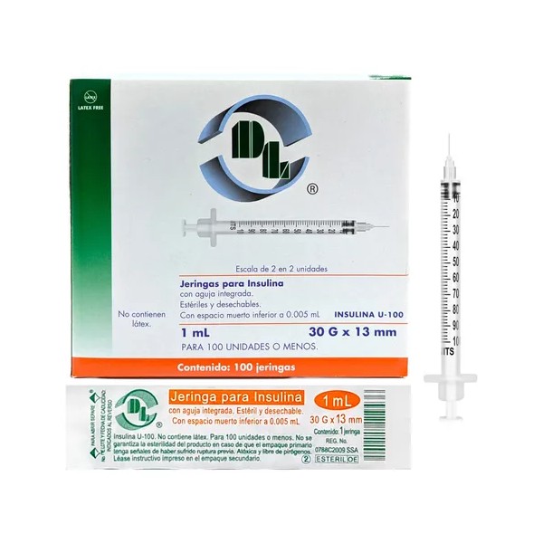 💉 JERINGAS UNIBODY PARA INSULINA 1ml (30Gx13mm) - CAJA CON 100 UNIDADES
