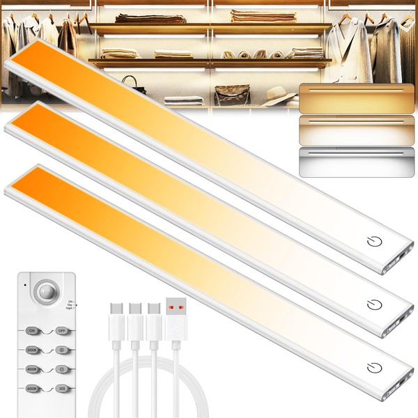 100 LED Under Cabinet Lights Wireless with Full Lighting,Rechargeable Closet Lights with Remote and Motion Sensor Indoor,Under Counter Light with CCT and Dimmable for Kitchen,Stair(3 PACK,11.8inch)