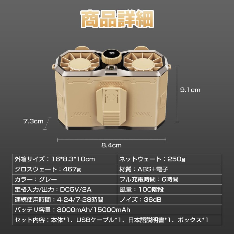 - Large Capacity: 8,000 / 15,000 mAh: When fully charged for 3/6 hours, it can last up to 24 / 28 hours with a fan. Not only is it small, lightweight and easy to carry, but the powerful motor rotates at high speed, and negative pressure increases air circulation and increases wind power