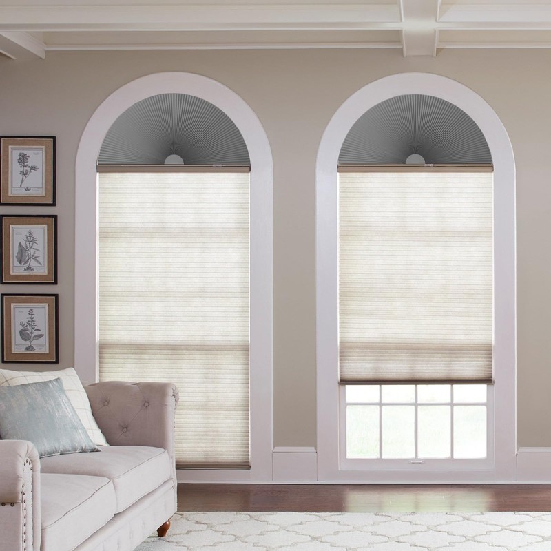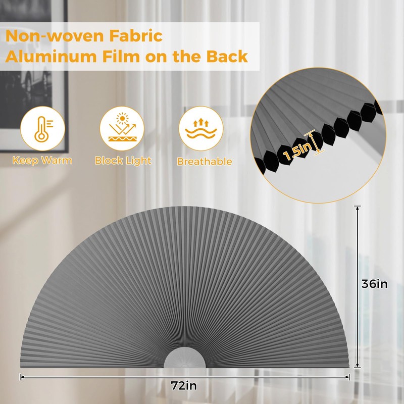 100% Light Blocking Arch Window Shades, Pleated Fabric Half Circle Cellular Cordless Semicircular Blinds with No Tools, Freely Cut Blind Half-Round Shade for Living Rooms Bedrooms Offices(36"×72")