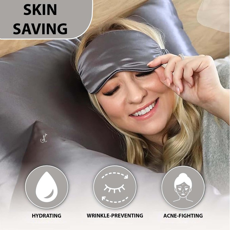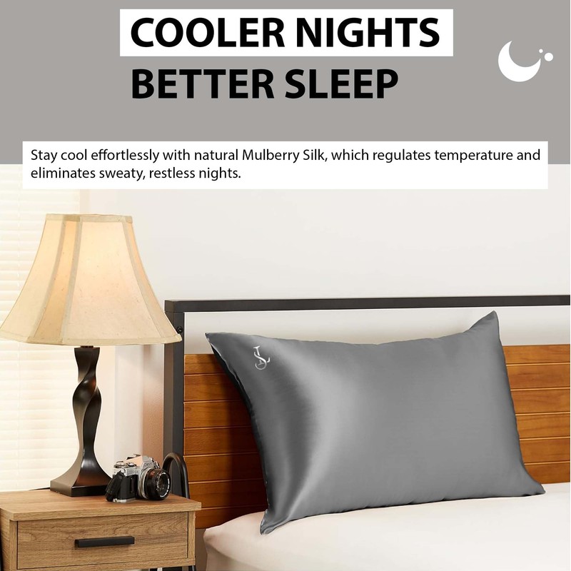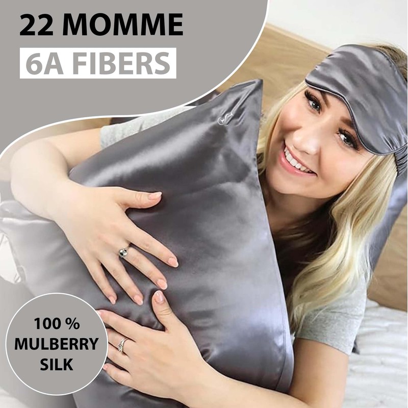 100% Mulberry Silk Pillowcase for Hair and Skin Health - 22Momme Premium Grade 6A Soft & Cooling Queen Size Silk Pillowcase with Hidden Zipper - Includes 2 Scrunchies & Laundry Mesh (Grey)