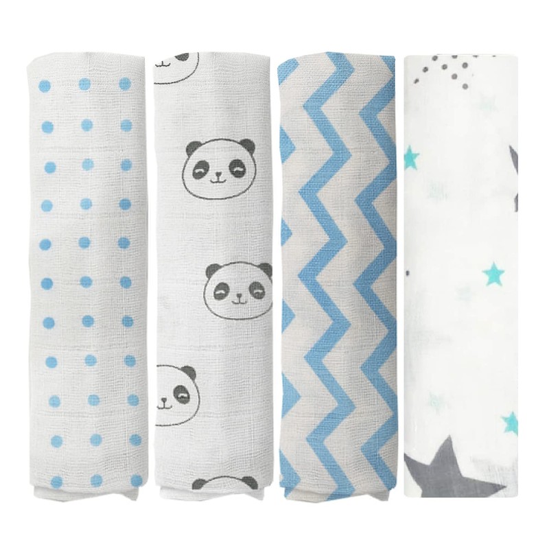 - MUSLIN SWADDLE BLANKTES INCLUDES - Pack of 4 Muslin Cotton Swaddle Blanket 47" X 47'' (120 x 120 cm). These are large enough to easily wrap or swaddle babies from new born infants to toddlers. Easy steps to swaddle, no late-night struggles. Our generously sized unisex swaddle blanket is designed to grow with your baby as they transition into their toddler years.